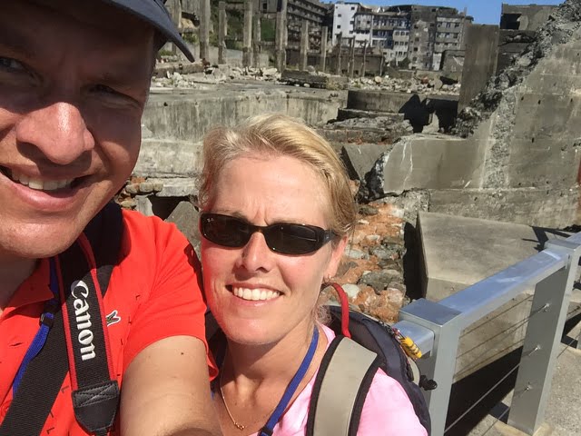 17-10-2016: Vanochtend vroeg uit de veren want we hebben een tour naar Hashima geboekt. Hashima heeft de vorm van een oorlogsschip en in het Japans is dit Gunkanjima. Het is sinds 5 juli 2015 een UNESCO World Heritage Site. Het is een verlaten eiland waar tot 1974 kolen werden gewonnen in schachten van maar liefst 1 km onder de zeebodem. Het was in de hoogtijdagen het dichtstbevolkte stuk van Japan. Moet je voorstellen dat heel Waspik op 63.000 vierkante meter woont. Het eiland heeft een lengte van 480 m en een breedte van 160 m. In 2012 was Gunkanjima te zien in de Bondfilm Skyfall. We voeren eerst met de boot naar een ander eiland waar we volledig in het Japans uitleg kregen bij een maquette van Gunkanjima. Gelukkig hadden we een goede folder in het Engels gekregen. Toen iedereen weer aan boord was voeren we richting het eiland, waar we eerst een rondje omheen vaarden, zodat je erg goed de vorm, nl het oorlogsschip, kon zien. Er is slechts een klein deel dat je mag bezoeken, maar goed ook, want heel veel staat op instorten. Wouter waande zich een personage in Far Cry, een computerspel. De Japanners kregen weer uitleg en wij konden alvast onder begeleiding doorlopen. Het eiland beschikte vroeger over alle faciliteiten, een school, ziekenhuis, pachenko hall en zelfs een zwembad gevuld met zeewater. Wij hadden erg mooi weer en de zee was rustig, maar het blijkt daar erg te kunnen spoken, waardoor het eiland steeds meer in verval raakt. We waren rond lunchtijd terug en naast de pier was het YouMe winkelcentrum, dus we zijn naar de foodmarkt gelopen op -1 en de keuze was reuze. We hebben twee bentobox sushi gekocht en heerlijk gelunchd. Op een bepaald moment kwam er een vrouw naast ons zitten en die stonk echt uren in de wind, wat opmerkelijk is, want Japanners blijken veel minder te zweten dan Europeanen. Dit heeft met de hoeveelheid endocriene klieren te maken, we zijn maar verkast naar een andere tafel, want het was niet te harden. ’s Middags zijn we naar het Peace Park en Atomic Bomb museum gegaan. Het Peace Park is minder indrukwekkend dan in Hiroshima, maar het museum was veel rustiger waardoor we alles beter konden zien. Het was opnieuw erg indrukwekkend. De bom op Nagasaki is drie dagen na de bom op Hiroshima gedropt. De bom was een stuk groter en werd daarom de “Fat Man” genoemd. We zijn met de tram teruggereden, hier rijden pas echt pre-historische trams, maar dan wel met airco! Dat was vandaag wel nodig want het was vandaag 27 C en het voelde als 34. We konden nog een park bezoeken, maar hebben een terras bij de haven opgezocht. Dit is het eerste gezellige terras wat we zien in Japan. Onder het genot van een biertje, hebben we genoten van de zonsondergang en de voorbijgangers. Het is toch een raar volk de Japanners. Op een bepaald moment kwam er naast ons een vrouw bij twee mannen zitten. Als je ziet hoe onderdanig vrouwen doen bij mannen, dan word je er akelig van. We hebben op internet gekeken en het blijkt dat vrouwen stukken minder verdienen dan mannen in dezelfde functie, omdat ze oa. minder goede onderhandelaars zouden zijn. Vrouwen hun loon blijft vanaf hun 40ste gelijk in tegenstelling tot de mannen die blijven doorgroeien. ’s Ochtends hadden we gezien dat er bij YouMe op de bovenste verdieping een Shabu Shabu restaurant was. We wilden deze vakantie nog graag een keer hot pot eten, dus het was heerlijk smullen, want hier hadden ze Wagyu biefstuk en heerlijk varkensvlees. Je krijgt twee soorten bouillon, dunne lapjes vlees en groenten die je zelf kookt. We hebben op onze eerste avond in Peking ook Hot Pot gegeten, toen snapten we er nog helemaal niets van, gelukkig deze keer ging het bestellen een stuk soepeler. Te voet via prachtig uitzicht op de haven, naar het hotel gelopen, waar we nu nog een kopje groene thee drinken. Je zal het niet geloven, maar de waterkoker laat zelfs een melodie horen als het water kookt. Werkelijk alles praat hier tegen je of heeft een melodie, wij zouden er gek van worden.